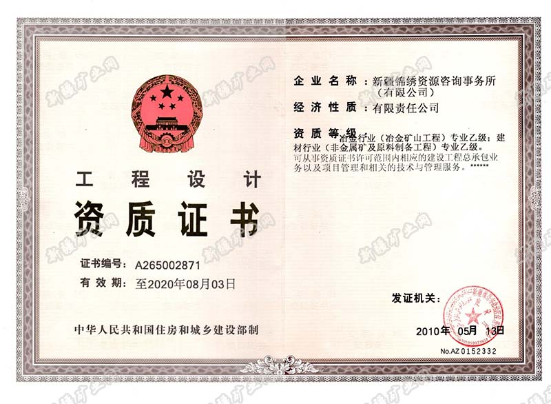 冶金(冶金礦山工程)乙級、建材(非金屬礦及原料制備工程)乙級資質設計; 礦業企...