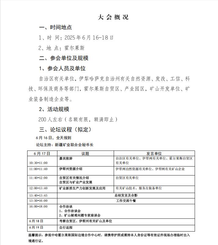 關(guān)于召開2019新疆礦業(yè)發(fā)展暨綠色礦山建設(shè)高峰論壇的通知