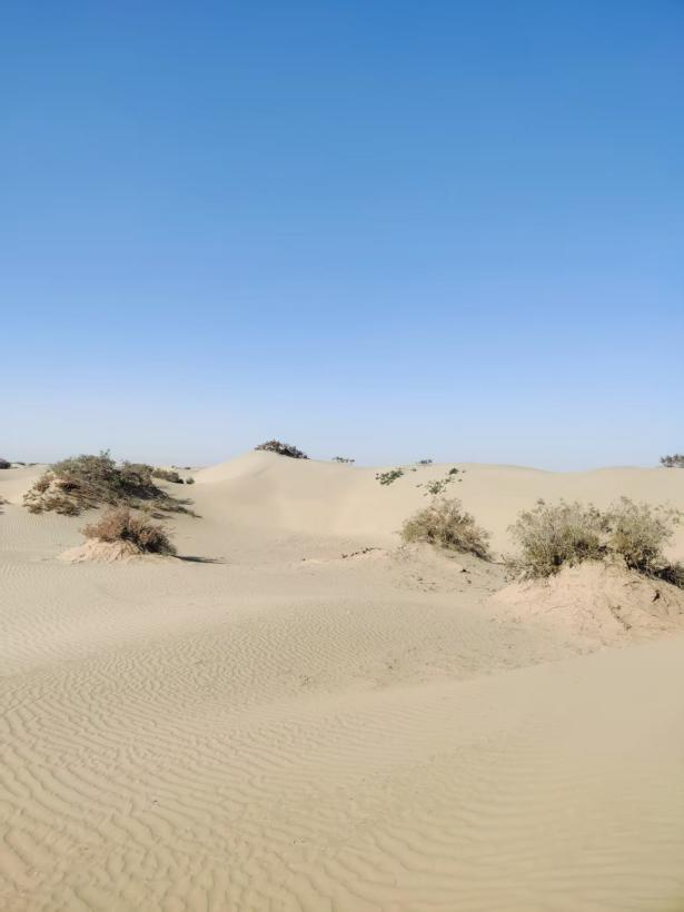 5.礦體特征:該建筑用砂(風積砂)礦體形態呈四邊形,南北方向寬0.6千米,東西方向長1.2千米,出露標高1049-1034米,普查區范圍面積為0.6149平方千米。礦體向四周均延伸至普查區外,根據普查區內淺井揭露,淺井控制深度1.8~6米,平均深度3.89米;圈定礦體厚度0~3.9米,平均厚度1.8米。礦體直接出露地表,主要為土黃色細砂土,粒度較細,0.075~0.3mm,成分主要為石英、長石及云母,分選較好。