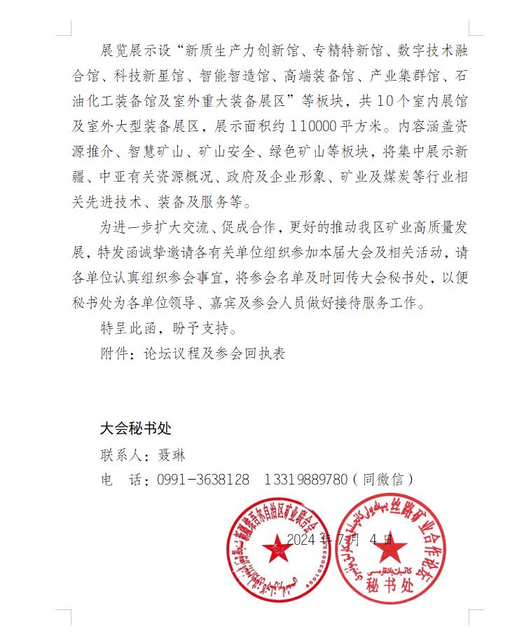 關于邀請組織參加絲路礦業合作論壇 及相關活動的函